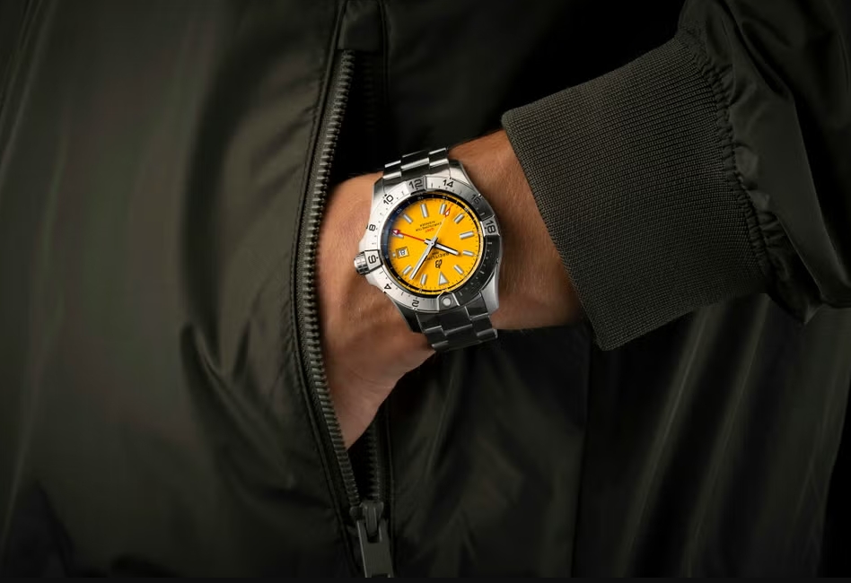 The colour isn’t just cosmetic: yellow was historically used for maximum visibility in cockpit and underwater conditions, and over time became a visual shorthand for Breitling’s most professional, high-performance instruments.